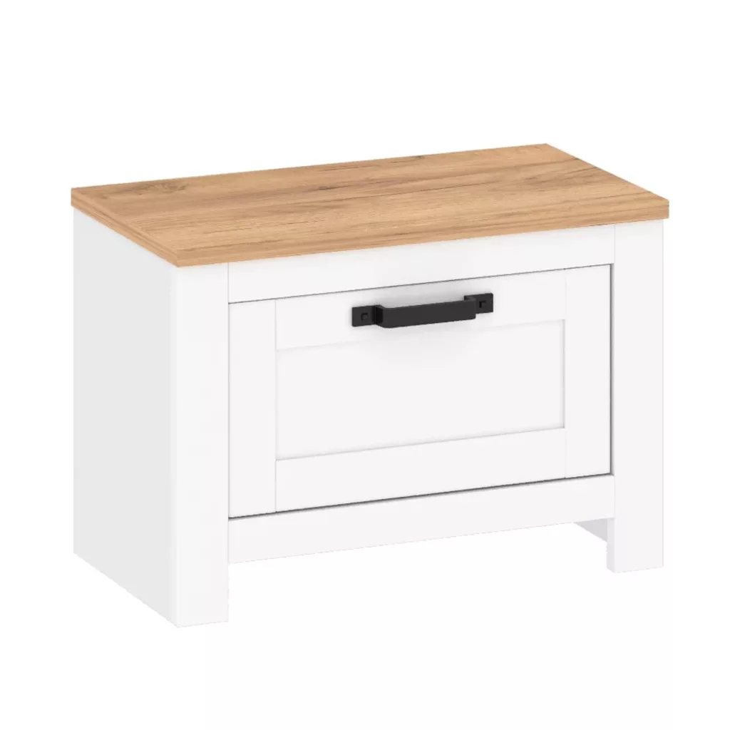 Funkcionális cipőtároló szekrény, amely további helyet biztosít több pár cipőnek vagy kiegészítőnek. Ez a szekrény önálló elemként vagy fali akasztóval kombinálva is használható, hogy cipőit rendezetten tartsa, és előszobáját rendezetten tartsa.
