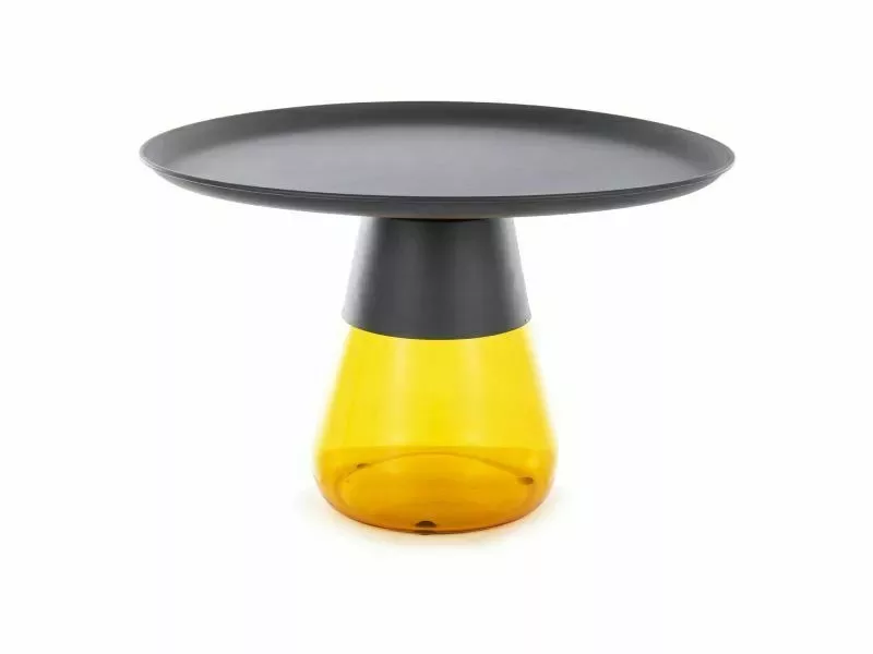 Dohányzóasztal, teteje: fém, keret: üveg, szín: matt fekete / narancssárga.