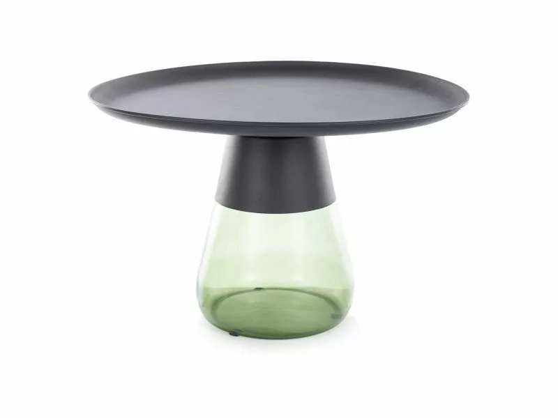 Dohányzóasztal, teteje: fém, keret: üveg, szín: matt fekete / zöld.