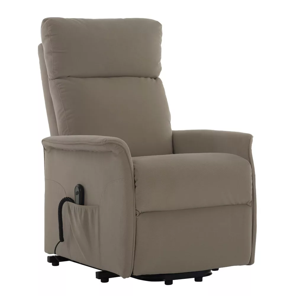 Praktikus relaxfotel, puha szövettel kárpitozva, relaxációs funkcióval felszerelve, amely leengedi a háttámlát és megemeli a lábtartót. A szék előre is dönthető, hogy segítsen a felállásban, így alkalmassá teszi azokat, akiknek nehézséget okoz a felállás. Hullámos felfüggesztéssel és rugalmas pántokkal rendelkezik. Az oldalán egy kis zseb található a távirányító funkció tárolásához. A relaxfotel mélysége 90 cm-ről 159,5 cm-re nő, a magassága pedig 87 cm-ről 80 cm-re csökken, amikor a relaxációs mechanizmus aktiválódik. A relaxfotel ülése 46 cm széles. Az ülés maximális teherbírása 136 kg.