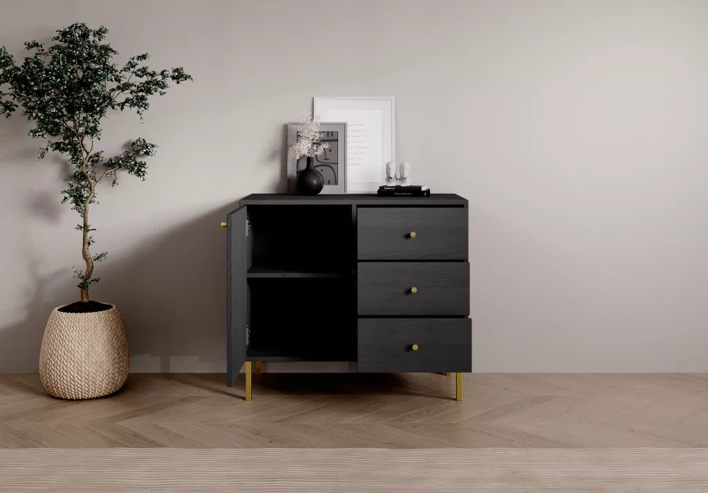 Tili 1D 3S Komód, Fekete, Fekete