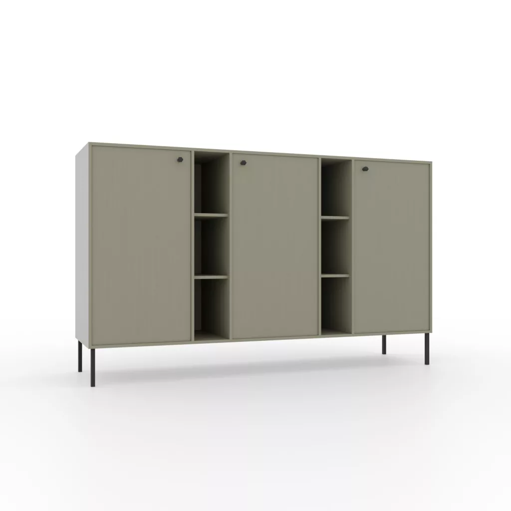 A Tili System komód egy modern bútordarab, amely átgondolt színeinek és elegáns kialakításának köszönhetően tökéletesen illeszkedik a legkülönbözőbb enteriőrökbe. Három színváltozatban kapható: **A komód a funkcionalitás és az esztétikum harmonikus kombinációja.Minden színváltozatot gondosan megterveztünk, hogy kiemelje a belső tér egyedi karakterét. A **fekete** kifinomult, modern megjelenést kölcsönöz a komódnak, amely ideális a minimalista és elegáns terekbe. A **homokbézs** melegséget és finomságot kölcsönöz, tökéletesen illeszkedik a dekoráció világos, természetes elemeihez. Másrészt az **eukaliptusz** a természet által inspirált árnyalat, amely frissességet és könnyedséget visz a belső térbe, ideális a modern és a klasszikusabb elrendezéshez egyaránt.