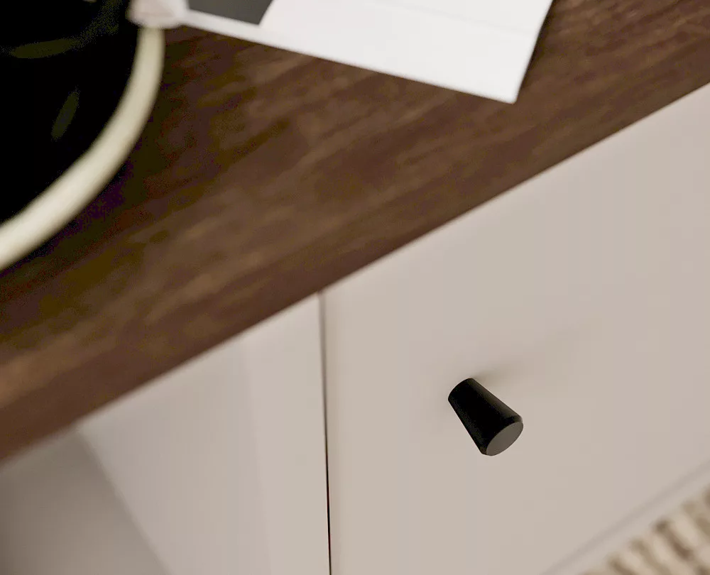 Tiramisu termékcsaládunk világos, krémszínű vázzal és meleg tónusú fa hatású belső felületekkel készül, ami elegáns kontrasztot ad és barátságos hangulatot teremt. Termékcsaládunk 13 cm magas fém lábakkal és fogantyúkkal kerül ellátásra. A bútorok frontjai bordázott felületűek.