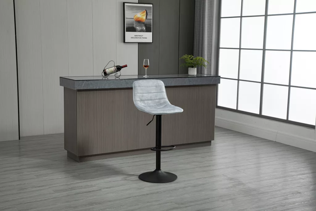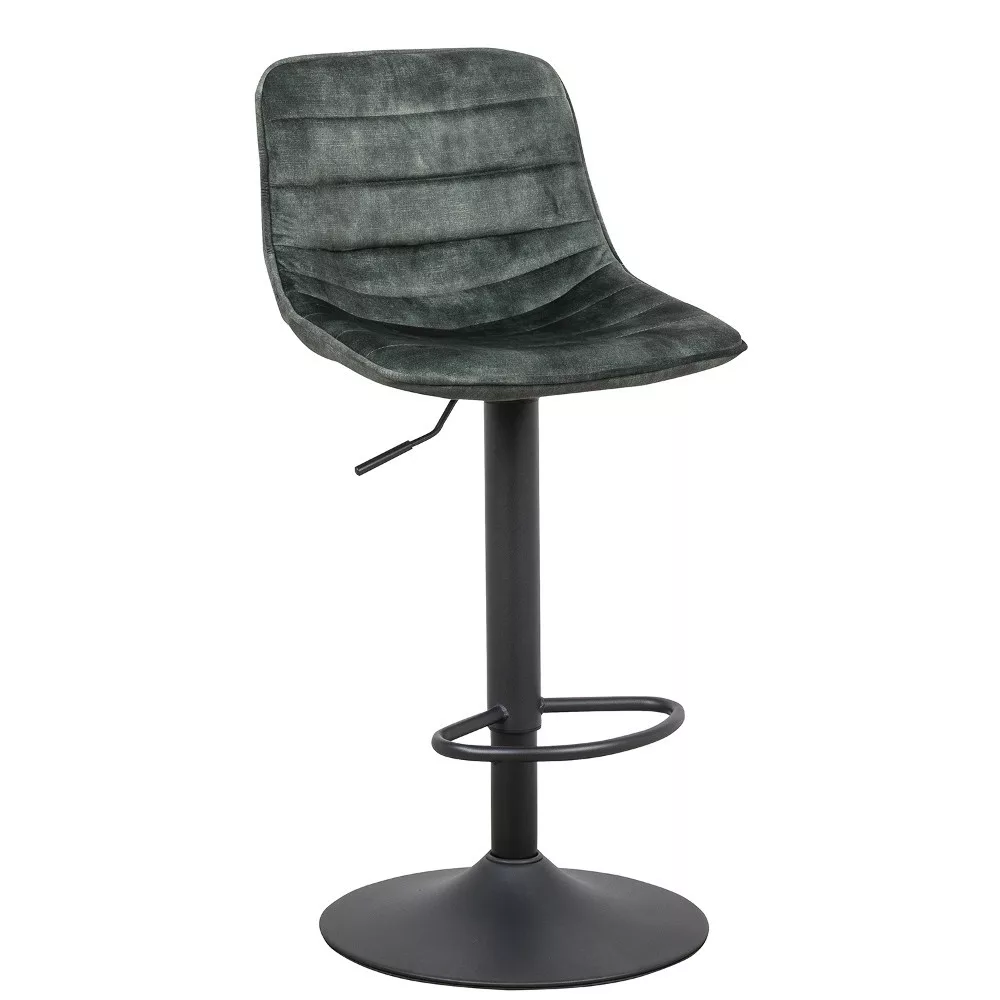 Divatos bárszék modern dizájnnal. Minőségi, zöld színű szövettel kárpitozva. Forgatható és magasságban állítható. Az ülőfelület rétegelt lemezből és habszivacsból készült, 4 cm vastag, így kényelmesen ülhet. Az 1,1 cm vastag lábazat fémből készült, és fekete színű porfestett. A szék lábtartóval is rendelkezik. Max. teherbírása 120 kg.