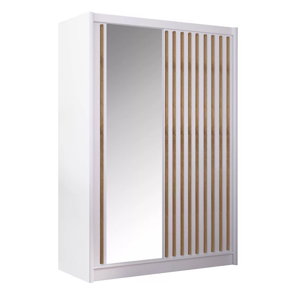 Tolóajtós szekrény, fehér/craft tölgy, 150x215 cm, LADDER