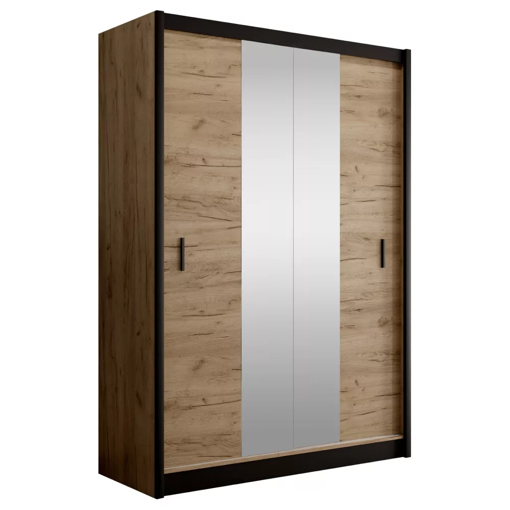 Tolóajtós szekrény, fekete/craft tölgy, 150x215 cm, LADDER Hálószoba bútorok > Gardróbszekrény