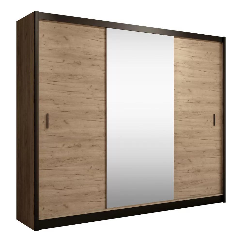 Tolóajtós szekrény, fekete/craft tölgy, 250x215 cm, LADDER Hálószoba bútorok > Gardróbszekrény