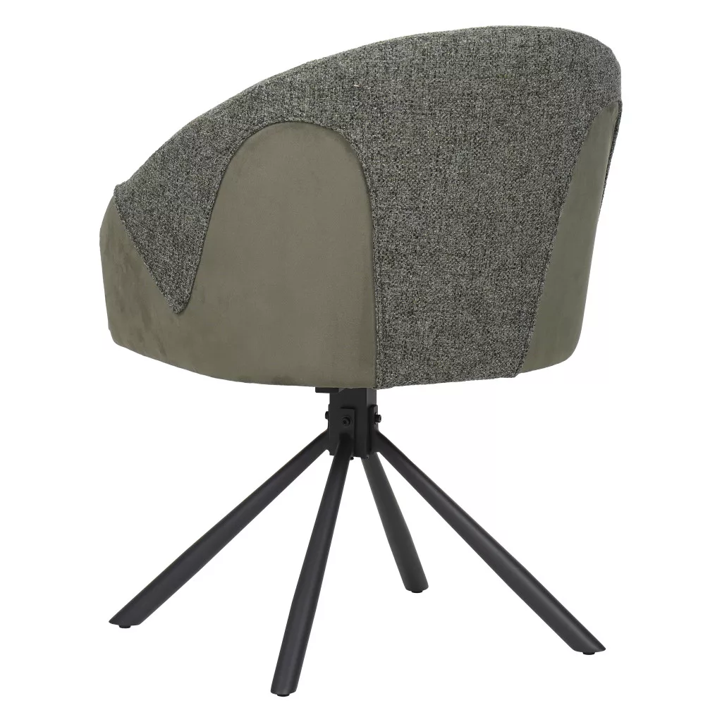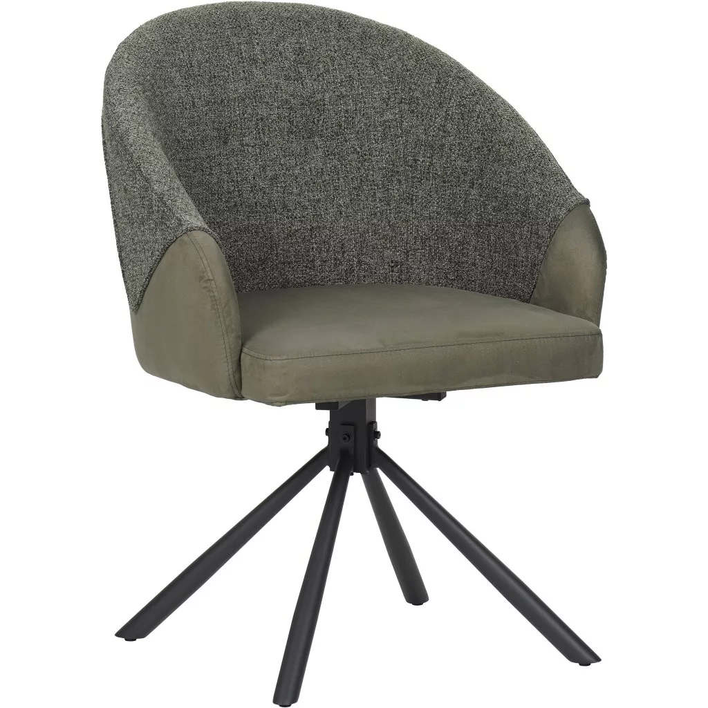 Forgatható étkezőszék, teljes egészében kárpitozott kiváló minőségű szövettel a kényelmes és elegáns megjelenésért. A szék két színben kapható: zöld vagy a barna és bézs szín szépen illeszkedő kombinációjában. Az ülőfelület 49 cm-es magasságban helyezkedik el, így kényelmes ülési élményt nyújt a legtöbb étkezőasztal magasságához.