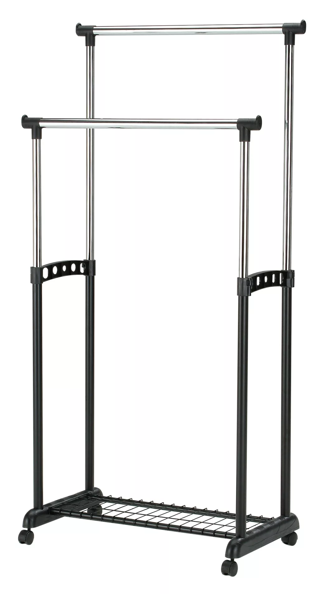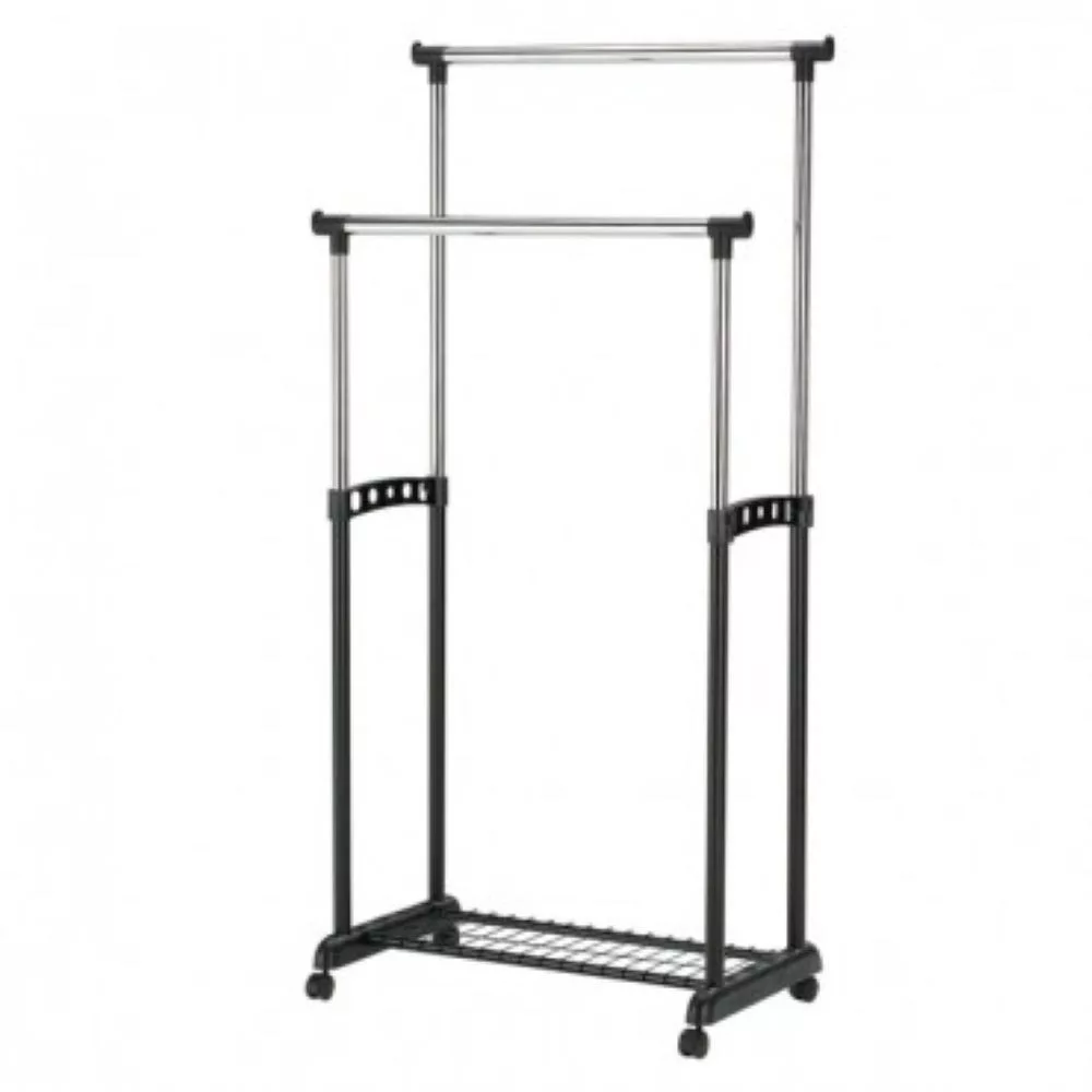 Praktikus fém állvány, amely magasságban állítható. Kerekeken áll, ami megkönnyíti a mozgást a szobában. Az alatta található polc további helyet biztosít. Egy akasztórúd teherbírása maximum 10 kg.