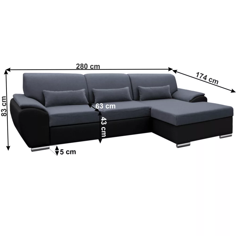 Ülőgarnitúra, fekete/sötét szürke, jobbos,  EMILY ROH MALÝ