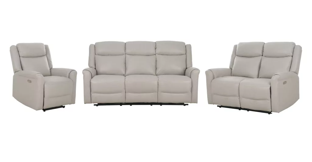 Modern ülőgarnitúra, puha bézs színű szövettel kárpitozva, karosszék, kétszemélyes és háromszemélyes változatban kapható. Az ülőgarnitúra elektromos relax mechanizmussal és egy elektromos motorral van felszerelve. A beépített USB csatlakozóval ellátott vezérlők aktiválásakor a háttámla átlós helyzetbe ereszkedik, az alsó rész pedig vízszintes helyzetbe emelkedik lábtartóként. A garnitúrák zseb- és hullámrugózással vannak felszerelve, és habbal vannak töltve a kiváló kényelem érdekében még hosszú ülés után is. Az egyes ülések maximális teherbírása 136 kg.