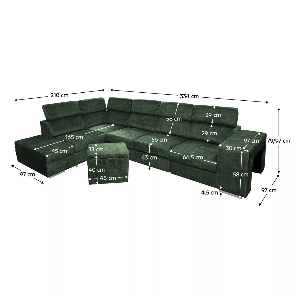 Méretek (SzxMéxMa): 334x210x79/97 cm