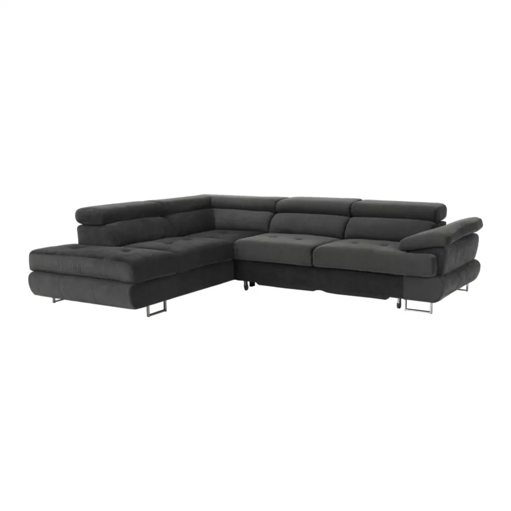 Ülőgarnitúra tárolóhellyel, szürke, szövet, balos, BUTON R