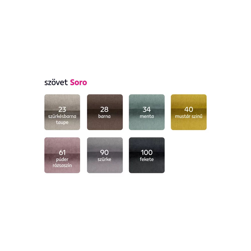 A kanapét a Soro szövet 7 színváltozatában megvásárolhatja a mintafüzet alapján is BUTON R összecsukható 778 900 Ft és BUTON P fix 717 900 Ft.. Választását közvetlenül a megrendelés megjegyzései közé írja be. Egyedi megrendelés esetén az adott összeg 20%-át előlegként szükséges befizetni. Az előleg befizetése után a kérése gyártásba kerül. A szállítási idő 6-8 hét.
