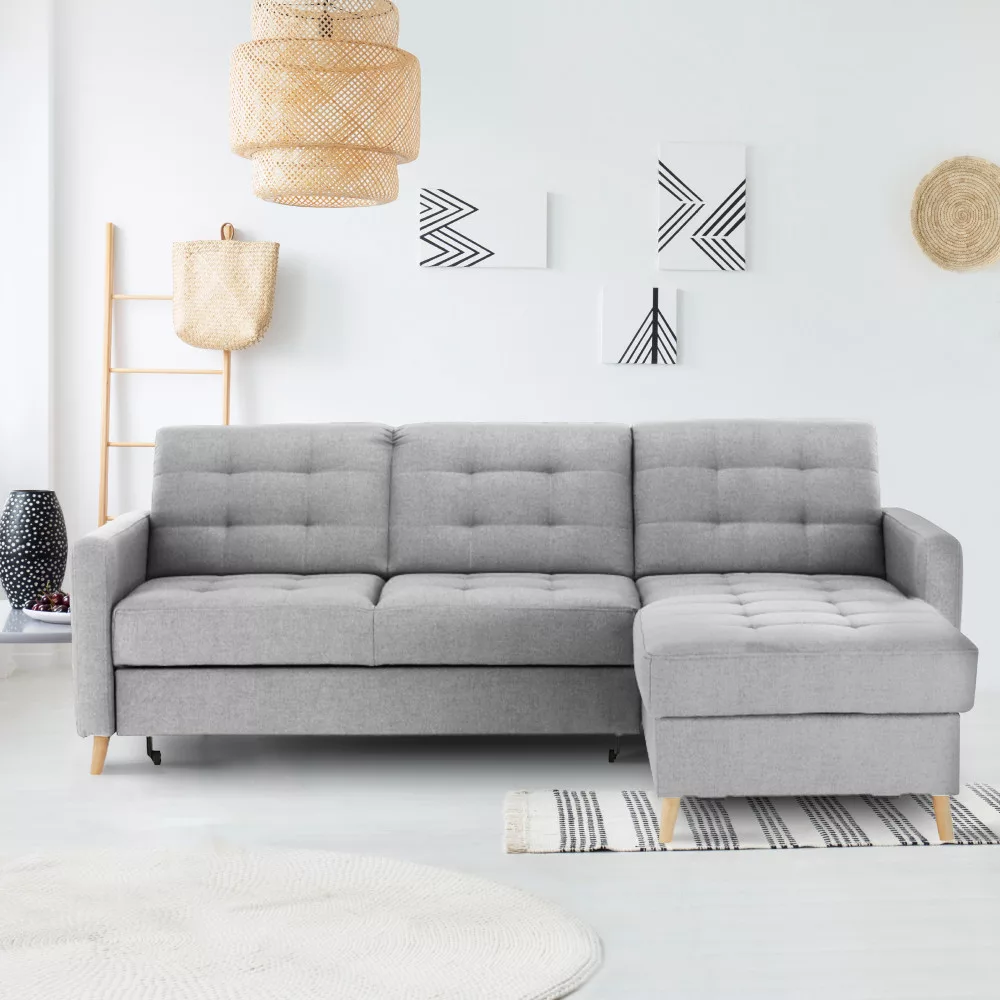 Univerzális sarokgarnitúra, világosszürke, VISBY