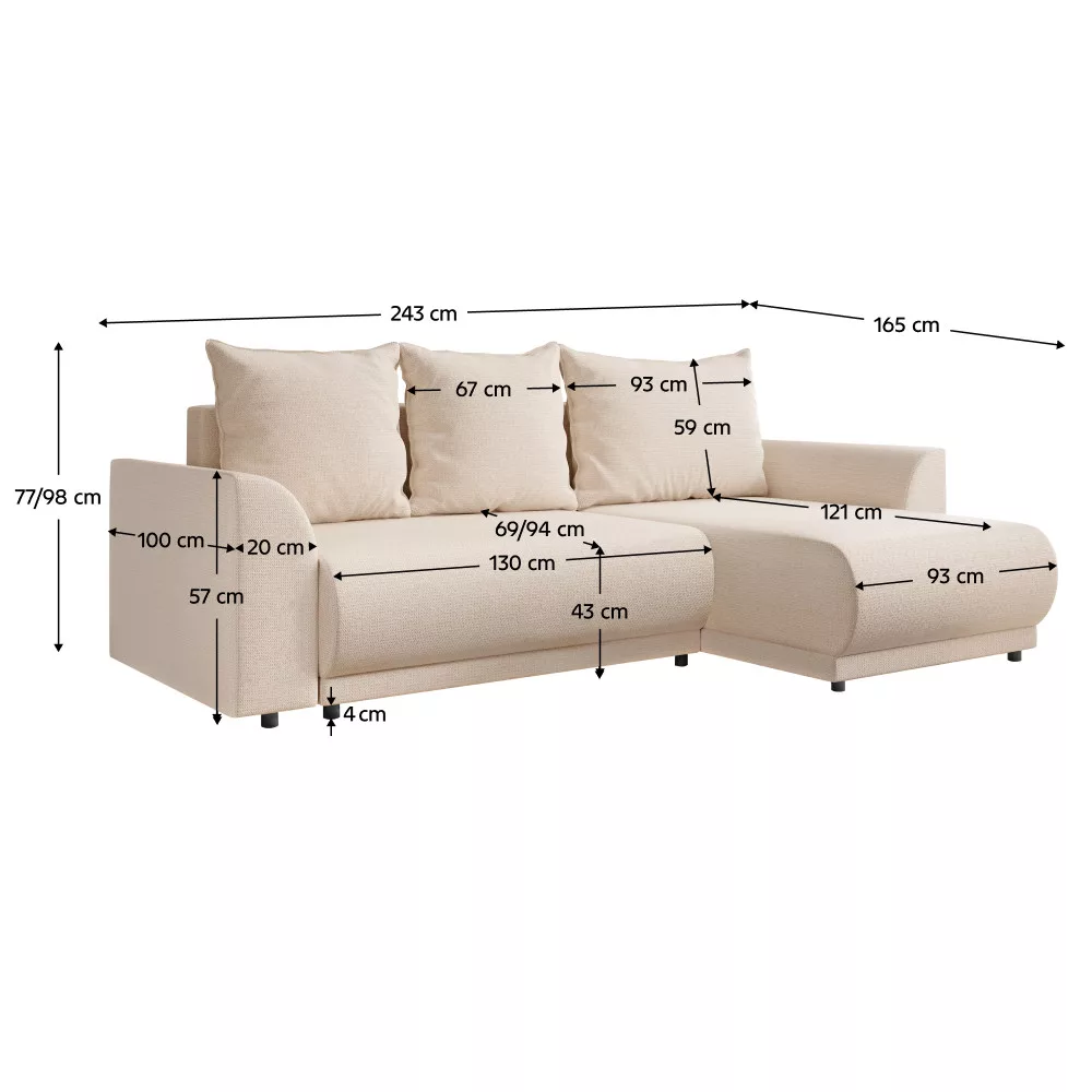 Méretek (SzxMéxMa): 243x165x77/98 cm