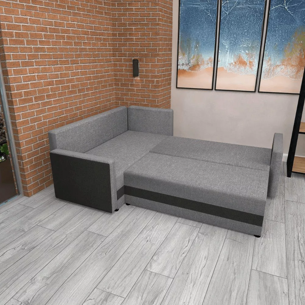 Univerzális ülőgarnitúra, fekete/szürke, DINA L ROH