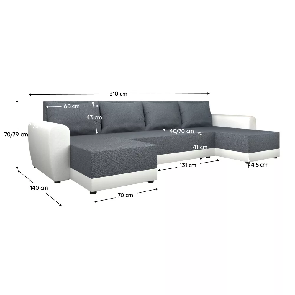 Univerzális ülőgarnitúra, szürke/fehér, DAKAR NEW U