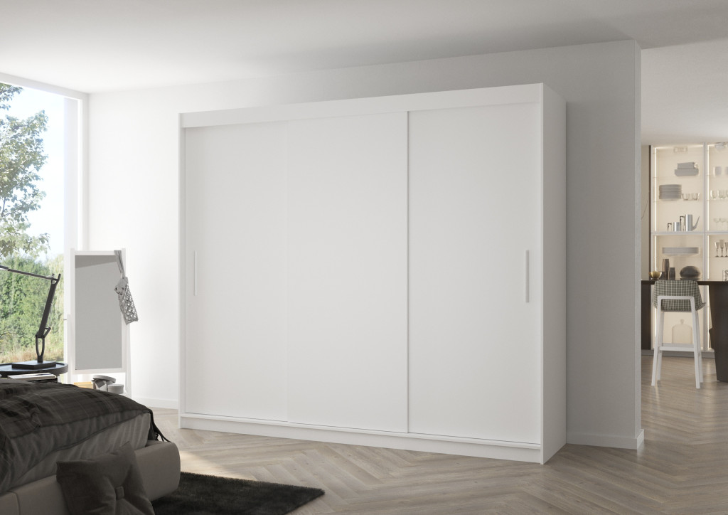 Üveges tolóajtós szekrény ANTOS 250, Fehér, Fehér