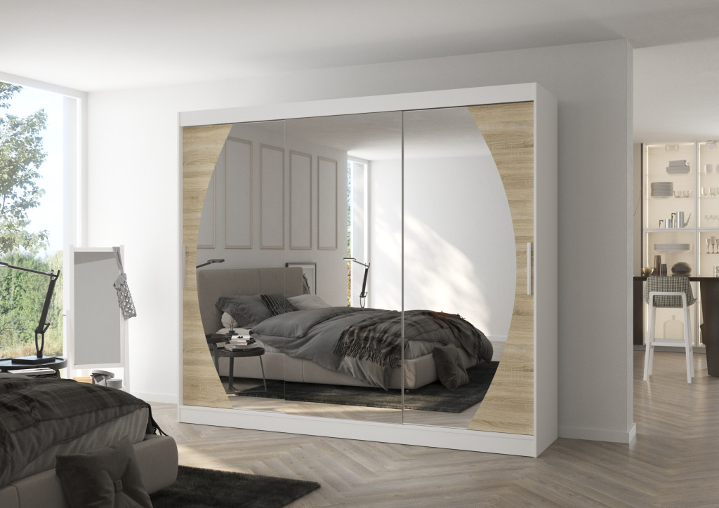 Üveges tolóajtós szekrény CAMBE 250, Fehér, Sonoma