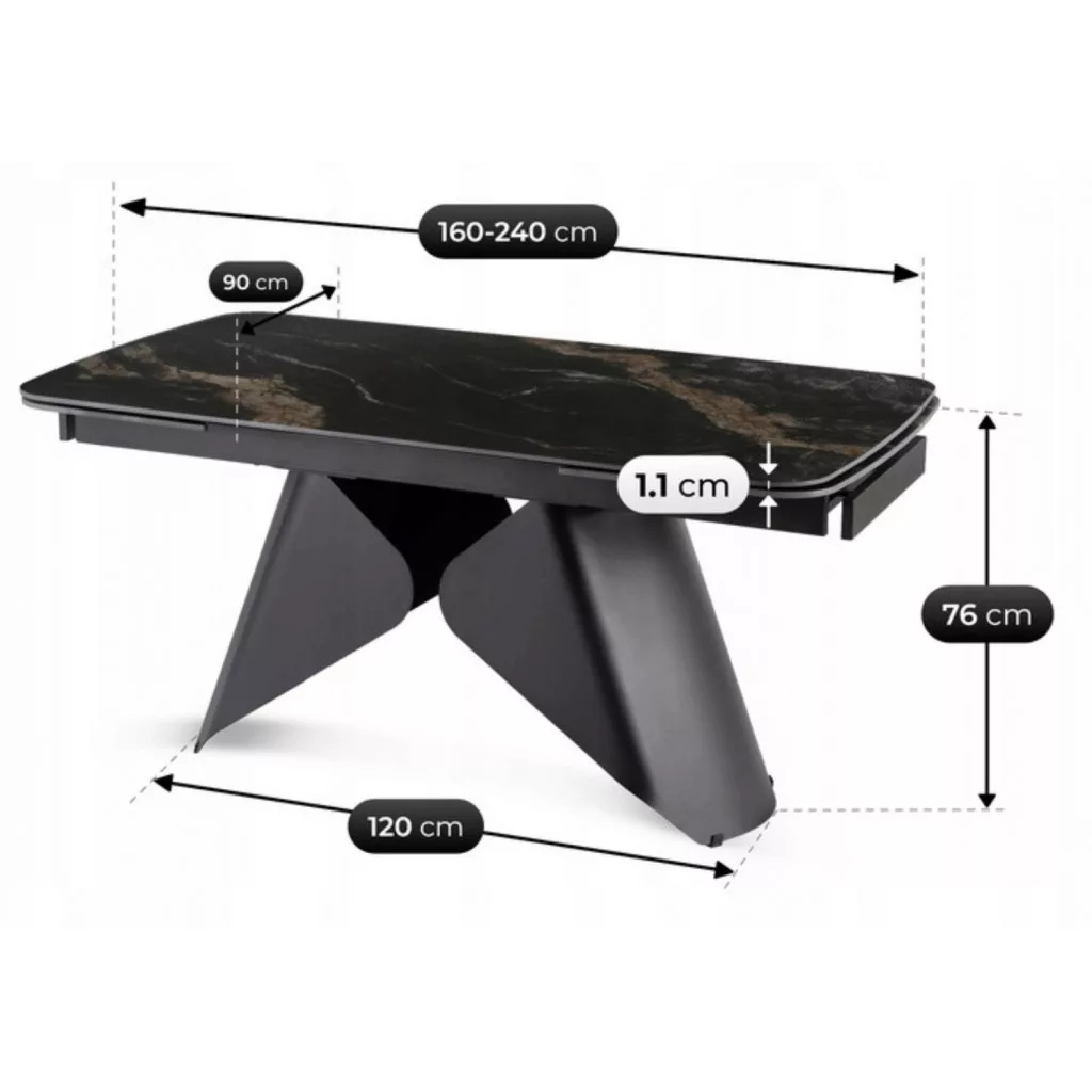 VERONA Kerámia Kihúzható Asztal 160-240 cm Fekete Márvány/Fekete
