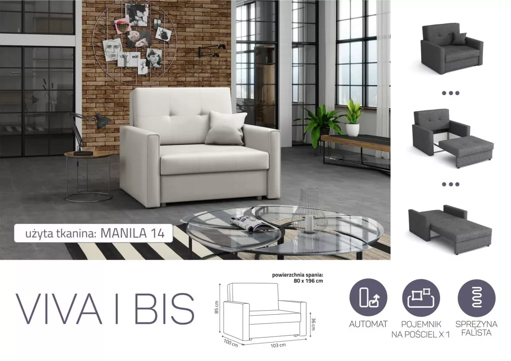 VIVA BIS I. előre nyíló rugós fotelágy Manila 14 színben