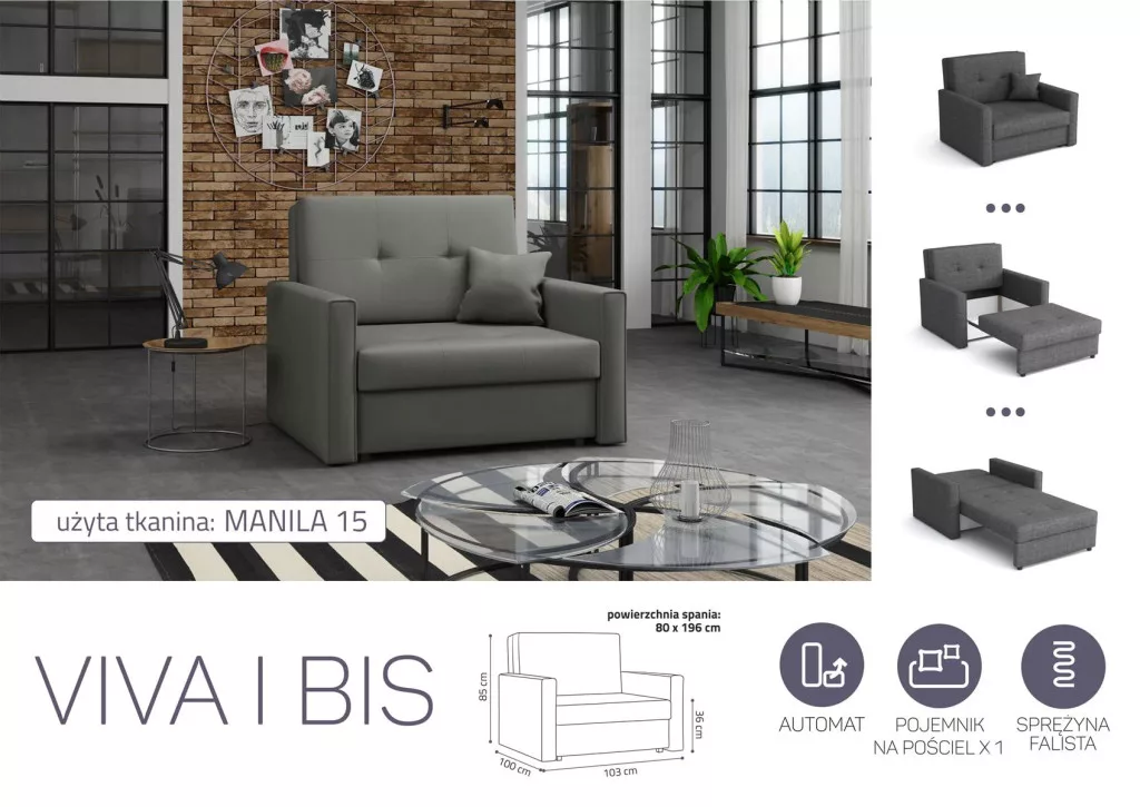 VIVA BIS I. előre nyíló rugós fotelágy Manila 15 színben