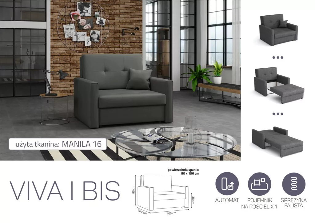 VIVA BIS I. előre nyíló rugós fotelágy Manila 16 színben