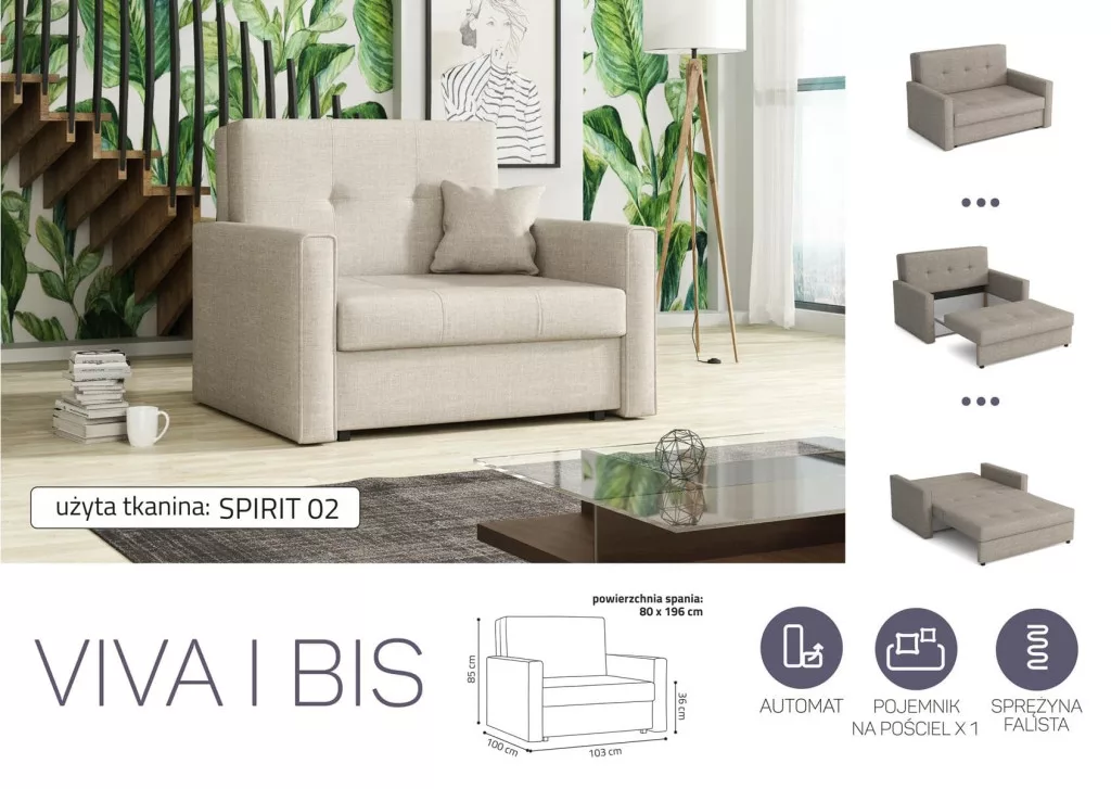 VIVA BIS I. előre nyíló rugós fotelágy Spirit 02 színben