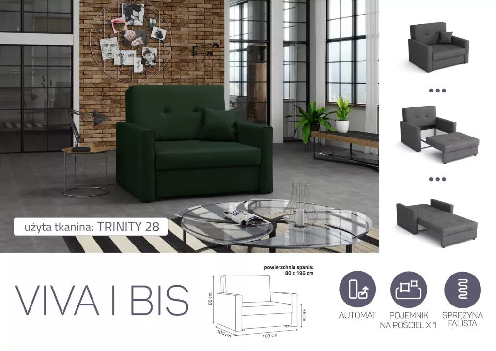 VIVA BIS I. előre nyíló rugós fotelágy Trinity 28 színben
