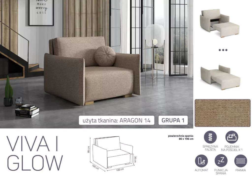 VIVA Glow I. előre nyíló fotel Aragon 14 színben