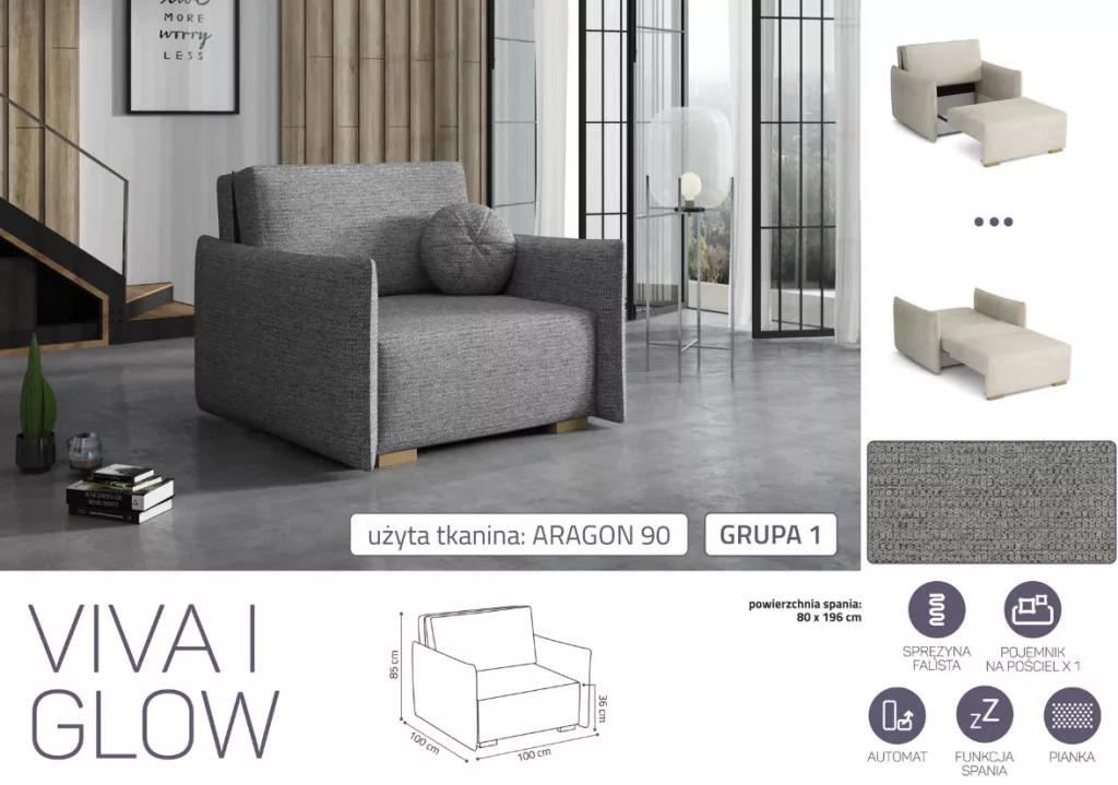 VIVA Glow I. előre nyíló fotel Aragon 90 színben