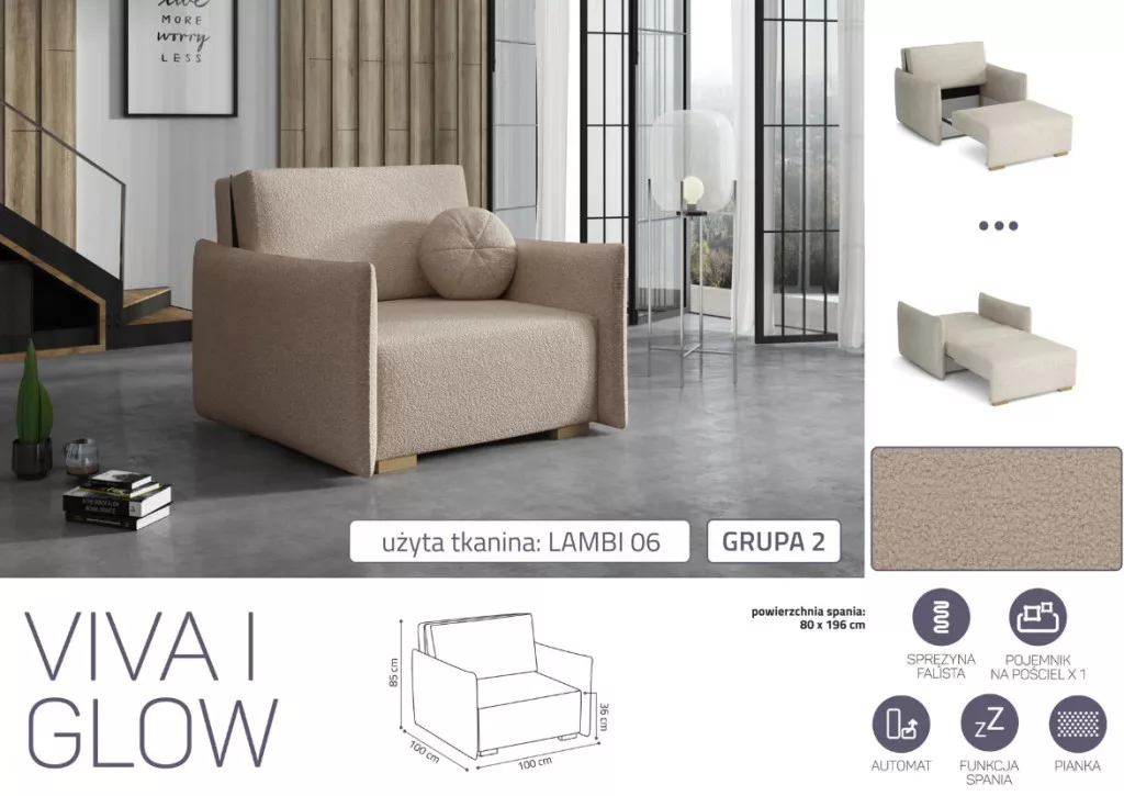 VIVA Glow I. előre nyíló fotel Lambi 06 színben