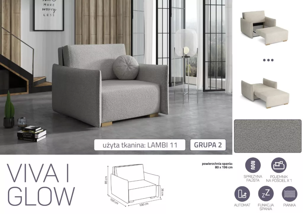 VIVA Glow I. előre nyíló fotel Lambi 11 színben