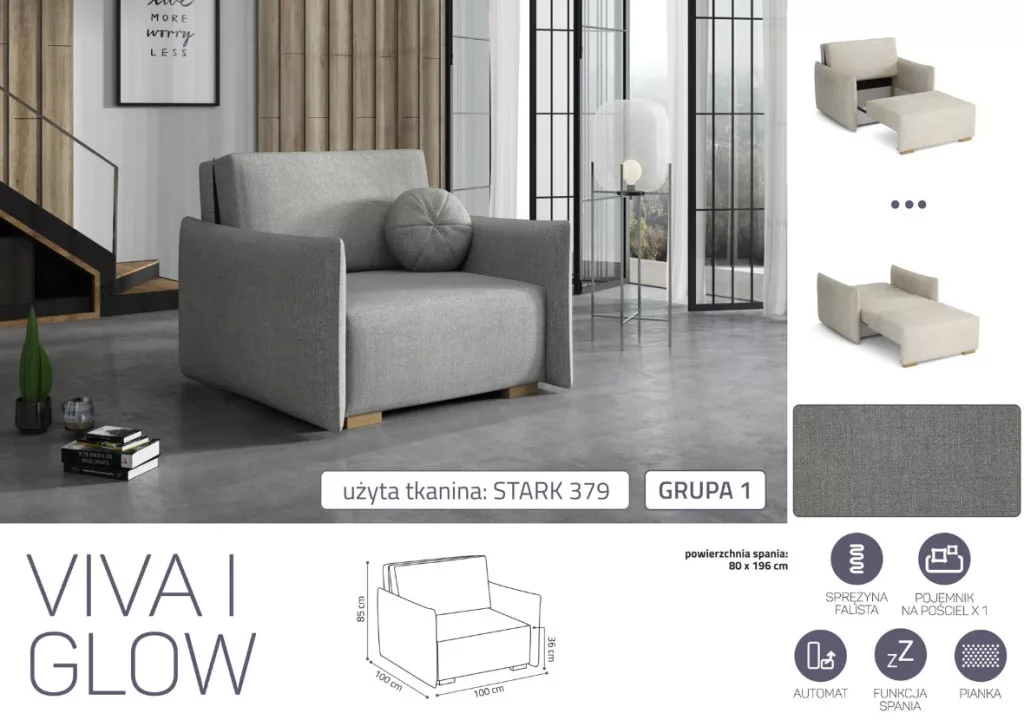 VIVA Glow I. előre nyíló fotel Stark 379 színben