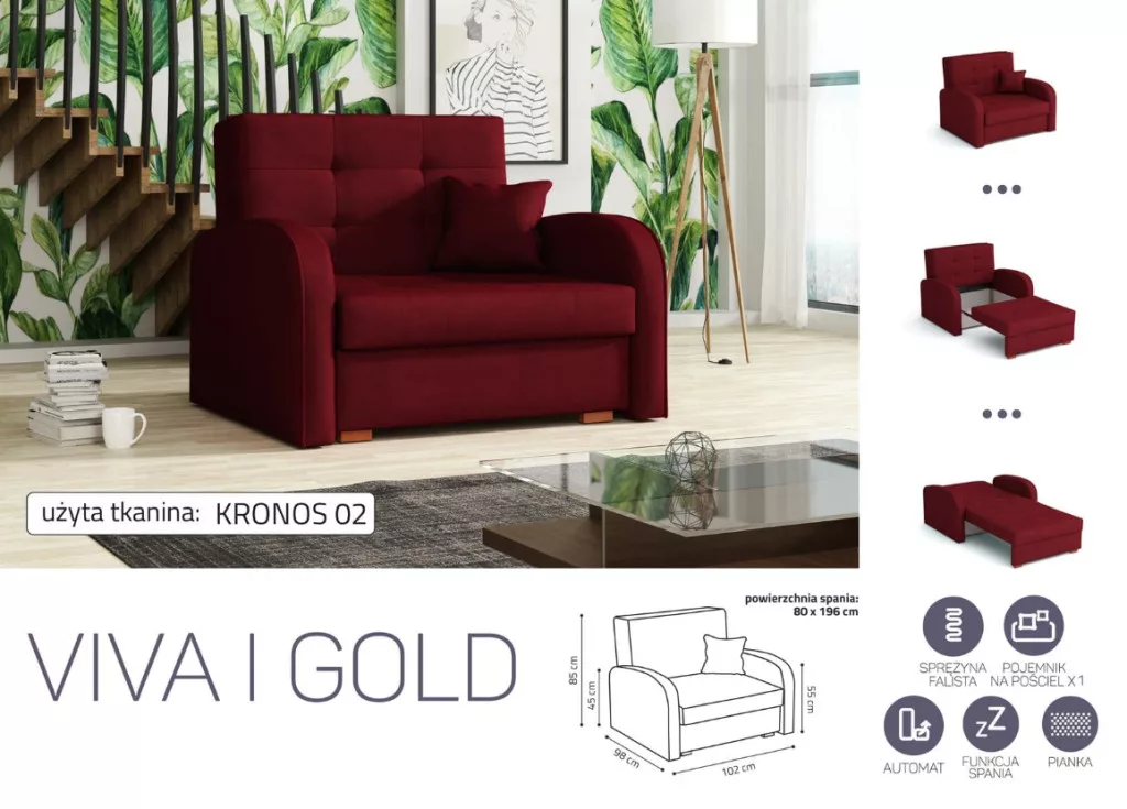 VIVA Gold I. előre nyíló fotelágy Kronos 02 színben