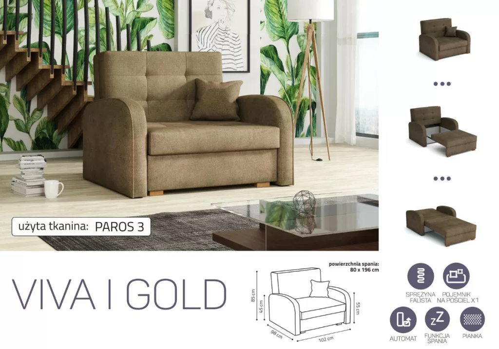VIVA Gold I. előre nyíló fotelágy Paros 3 színben