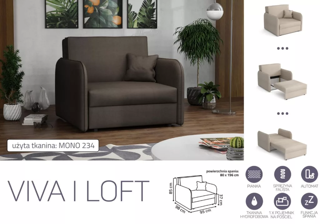 VIVA LOFT I. előre nyíló rugós fotelágy Mono 234 színben