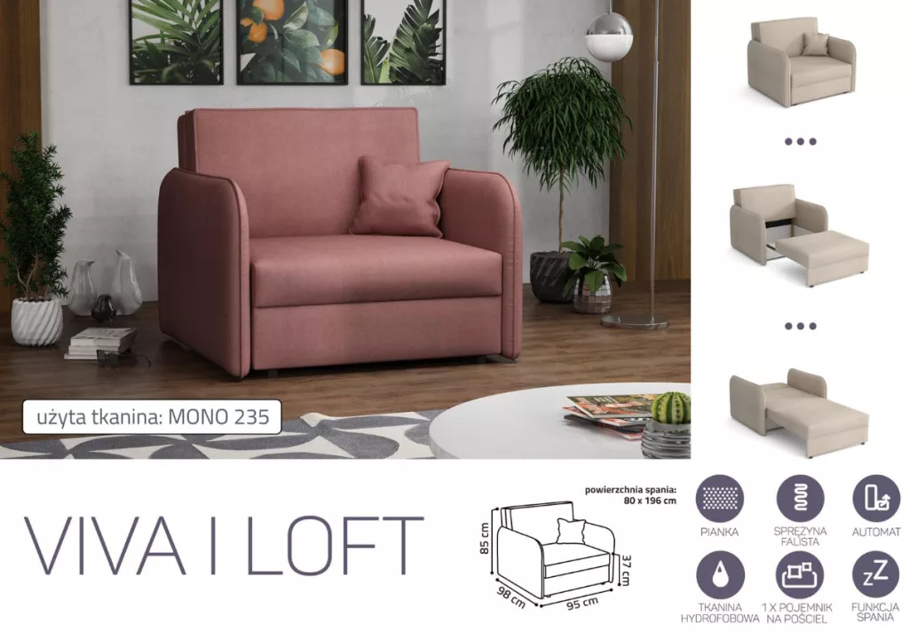 VIVA LOFT I. előre nyíló rugós fotelágy Mono 235 színben