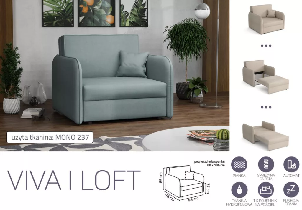 VIVA LOFT I. előre nyíló rugós fotelágy Mono 237 színben
