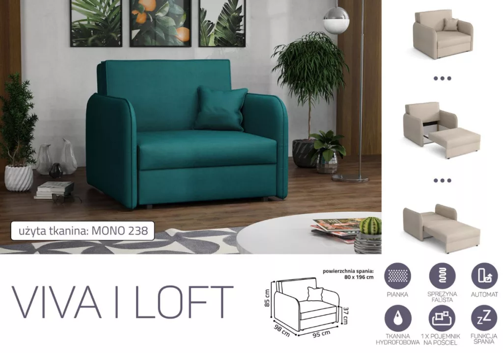 VIVA LOFT I. előre nyíló rugós fotelágy Mono 238 színben