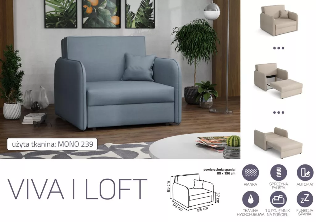 VIVA LOFT I. előre nyíló rugós fotelágy Mono 239 színben