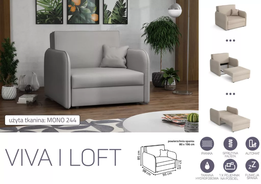 VIVA LOFT I. előre nyíló rugós fotelágy Mono 244 színben