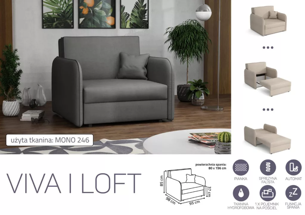 VIVA LOFT I. előre nyíló rugós fotelágy Mono 246 színben