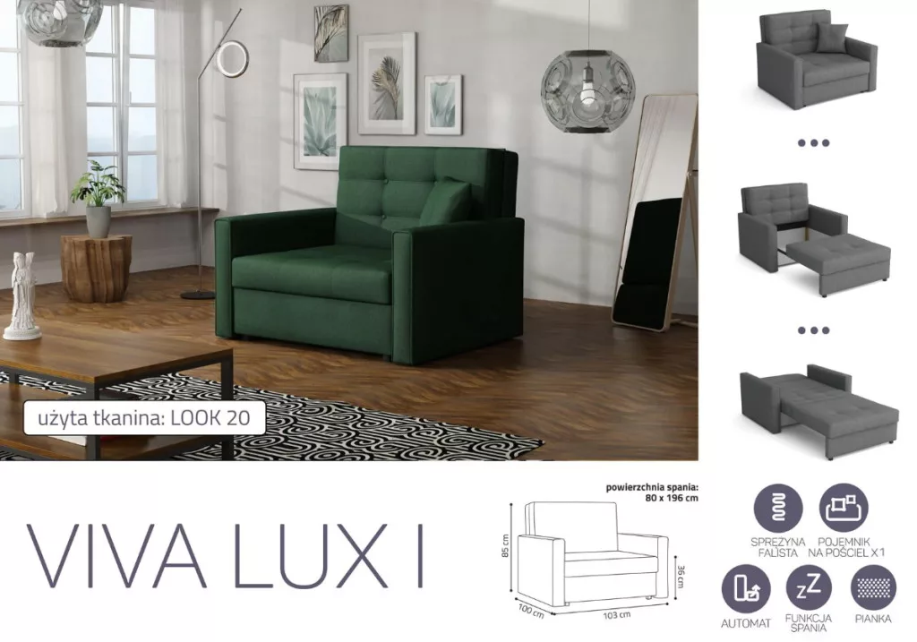 VIVA LUX I. előre nyíló fotelágy Look 20 színben