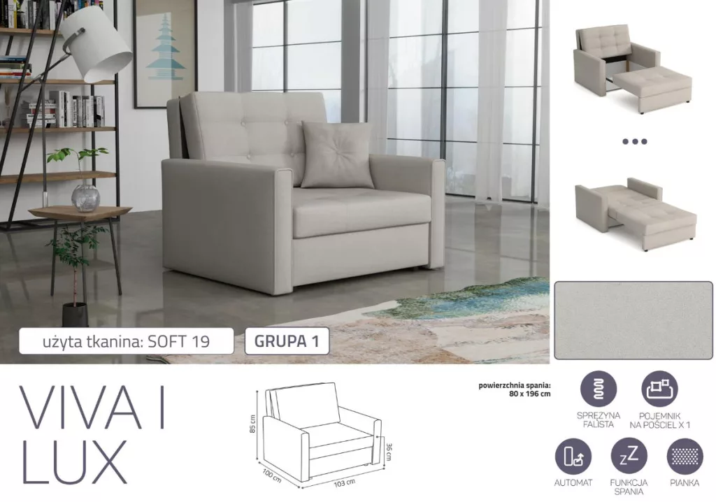 VIVA LUX I. előre nyíló fotelágy Soft 19 színben