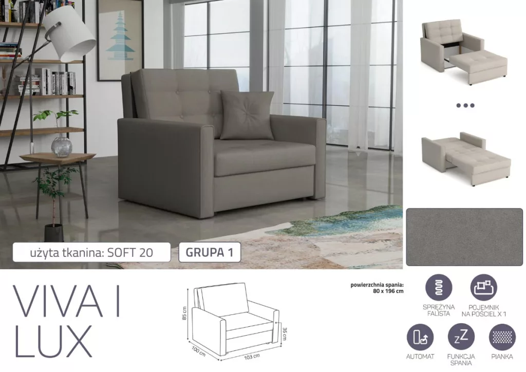 VIVA LUX I. előre nyíló fotelágy Soft 20 színben