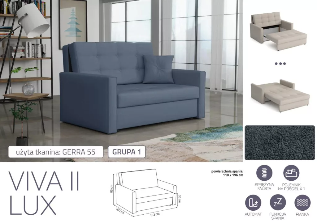 VIVA LUX II. előre nyíló fotelágy Geraa 55 színben