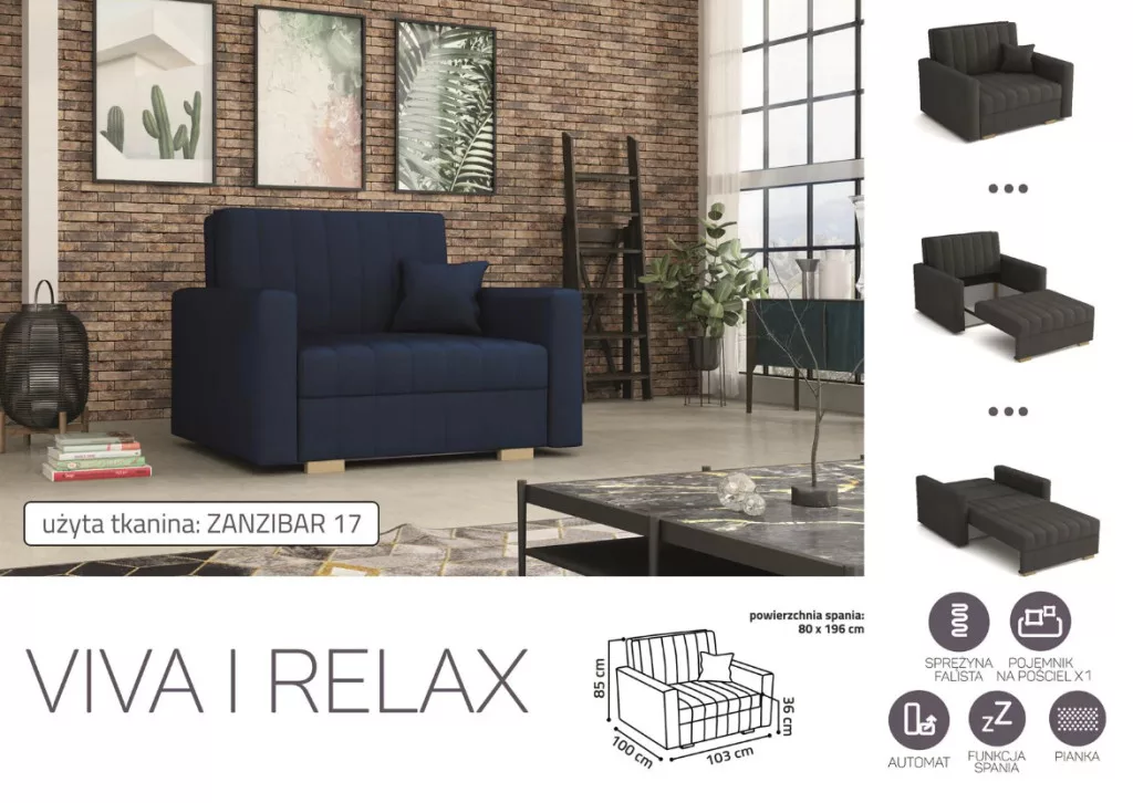 VIVA Relax I. előre nyíló fotelágy Zanzibar 17 színben