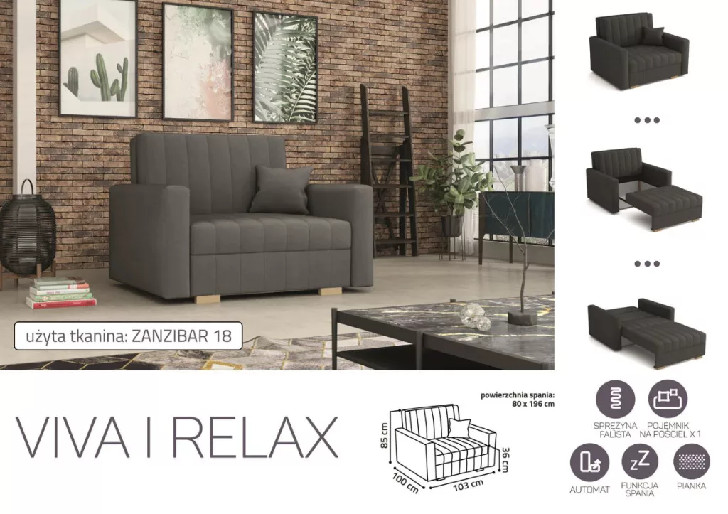 VIVA Relax I. előre nyíló fotelágy Zanzibar 18 színben